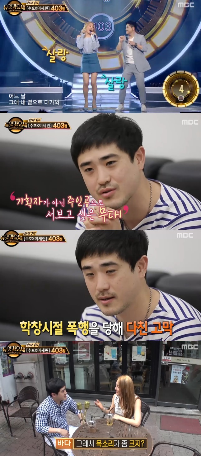 이날 엑소 수호와 이세린이 지목에 두 번째 무대를 꾸민 바다와 이원갑은 정수라의 ‘환희’를 선곡했다.
