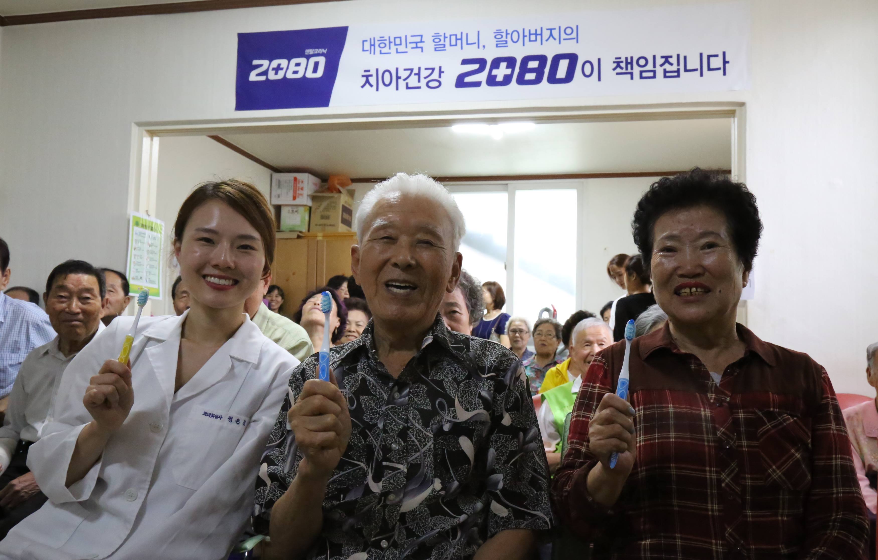 2080 할머니 할아버지 구강건강관리 교육은 서울 구로구 잣절마을 경로당을 시작으로 서울소재 경로당을 순회하며 잇몸질환 발병률이 높은 노인을 대상으로 진행된다.