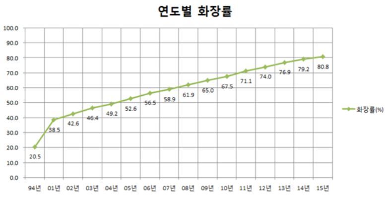 [세종=뉴스핌 이진성 기자] 보건복지부(장관 정진엽)는 지난해 전국 화장률이 80.8%로 최종 집계됐다고 27일 밝혔다. 이는 지난 1994년 화장률 20.5%에 비해 약 4배 증가한 수치다.