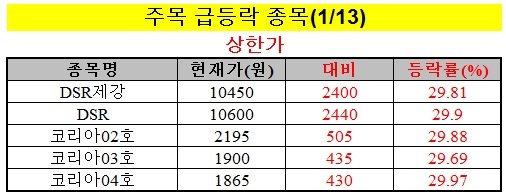 우선 DSR과 DSR제강은 '문재인 테마주'로 부각되며 상한가를 기록했다. 이날 DSR은 전일보다 29.9% 오른 1만600원으로 거래를 마쳤으며, DSR제강도 29.81% 상승한 10만450원으로 마감했다.