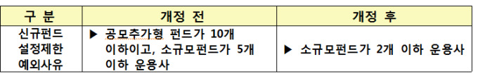 중대형사와 소형사 간 형평성 문제가 제기된 신규펀드 설정 제한 예외 인정 기준도 합리화 했다.
