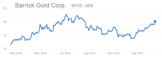 한편 뉴욕증시에 상장된 바릭골드 주가는 앞서 지난해 순익이 138% 성장했다는 보도가 나오면서 이날 상승폭을 최대 7.4%까지 늘리며 6개월여 만에 최고치로 치솟았다.