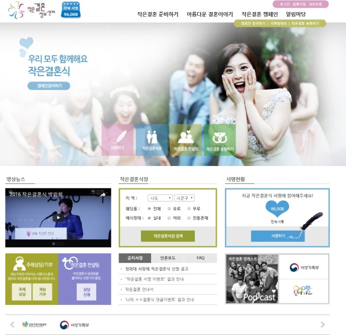 여성가족부는 소박하지만 의미 있는 결혼식을 희망하는 예비부부들을 위해 ‘작은결혼식 으뜸명소’ 예식 접수를 시작했다고 20일 밝혔다.
