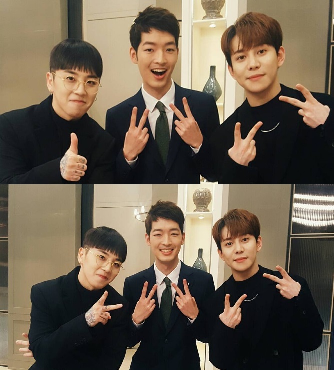 공개된 사진 속에는 오오기가 블락비 박경, 태일 사이에서 브이(V) 포즈를 취하며 밝은 미소를 짓고 있다. 블락비 박경, 태일 역시 밝은 미소로 훈훈함을 자아낸다.