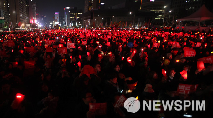 [뉴스핌=이성웅 기자] 9일 헌법재판소의 박근혜 대통령에 대한 탄핵심판 선고를 하루 앞둔 가운데, 촛불집회 주최 측 '박근혜 정권 퇴진 비상국민행동(퇴진행동)'은 만약 헌재가 인용 아닌 결정을 내릴 경우 비상상황을 선포하겠다고 엄포를 놓았다.