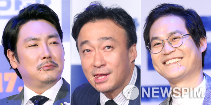 | 배우 조진웅, 이성민, 김성균(왼쪽부터)이 27일 오전 서울 광진구 자양동 롯데시네마 건대입구에서 열린 영화 '보안관' 제작보고회에서 성냥개비를 물고 포즈를 취하고 있다. /김학선 기자 yooksa@ |