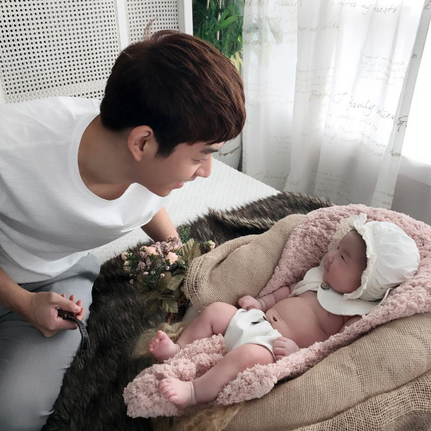 공개된 사진 속에는 이용대 선수가 딸 예빈이를 마주보며 행복한 미소를 짓고 있다.