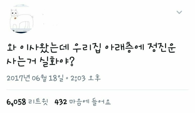 최근 한 트위터 이용자는 "와 이사왔는데 우리집 아래층에 정진운 사는 거 실화야?"라는 글을 남겼다.