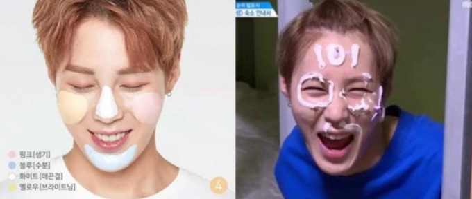 특히 해당 화장품은 옹성우의 '배고파요팩'으로 유명한 제품으로, 이외에도 라이관린, 김재환, 박지훈, 하성운 등이 팩을 얼굴에 바른 모습이 비교되고 있다.