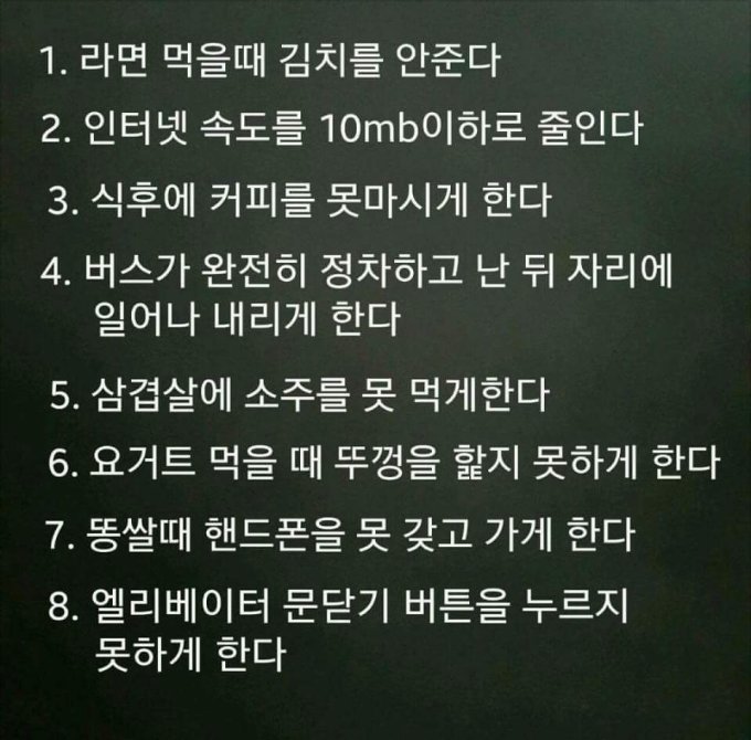 해당 게시물에는 한국인이라면 누구나 고통스러워할 상황들이 적혀 있다.
