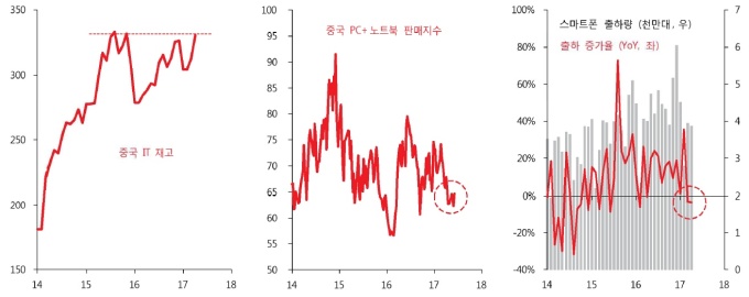 다만 통상 IT산업이 전통적으로 3분기가 최대 성수기인 점을 고려하면 4분기 초까지는 이런 우려가 덮일 것으로 봤다. 조 센터장은 "성수기 영향으로 현재 하락중인 반도체 현물 가격 하락폭도 3분기까지는 제한적"이라며 "현 코스피는 이익에 의한 상승여력을 10% 내외 갖고 있는 것으로 판단한다"고 말했다.