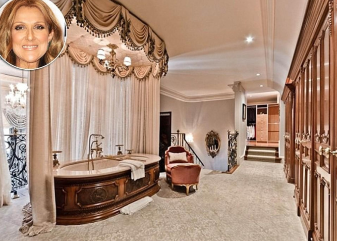 또 셀린 디온의 욕실은 2층 복도에 자리 잡고 있어 놀라움을 더한다. 욕조는 큰 커튼으로 가려져 있으며, 베이지색과 골드에 나무 소재의 욕조가 엔티크한 매력을 자아낸다.