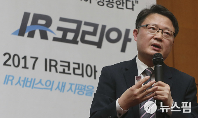 | 이민주 뉴스핌 중기IB팀장(부장)이 15일 오후 서울 여의도 한국거래소 국제회의장에서 열린'IR 코리아 설명회'에서 ‘IR 코리아, 뭐가 다른가?’의 주제로 강연을 하고 있다. /이형석 기자 leehs@ |