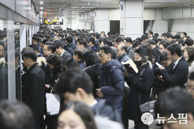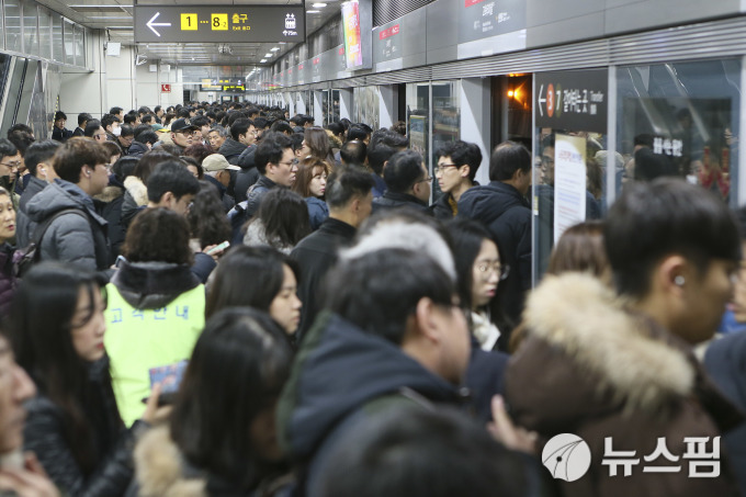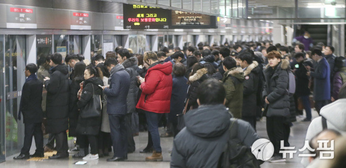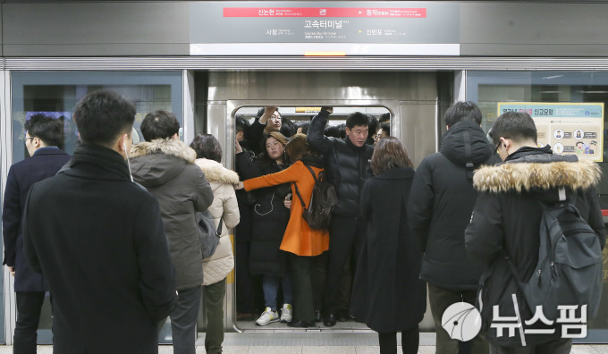 이날 오전 서울 반포동 고속터미널 승강장이 시민들로 붐비고 있다.