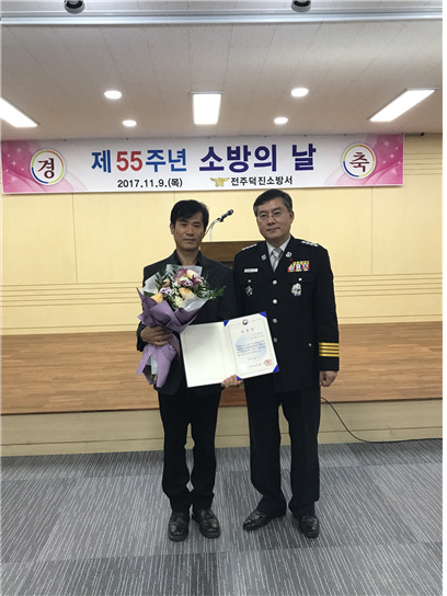 지난달 9일 전주 덕진소방서(소장 강원석)에서 열린 제 55주년 소방의 날 기념식에서 정석케미칼 손수길 부장이 화재예방 및 위험물안전관리에 대해 기여한 공적을 인정받아 수상의 영예를 안았다.