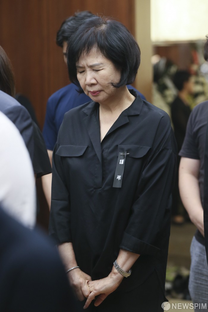 [서울=뉴스핌] 이형석 기자 = 손혜원 더불어민주당 의원이 24일 오후 서울 서대문구 세브란스 병원 장례식장에 마련된 고(故) 노회찬 정의당 원내대표의 빈소를 찾아 조문하고 있다. 2018.07.24 leehs@newspim.com