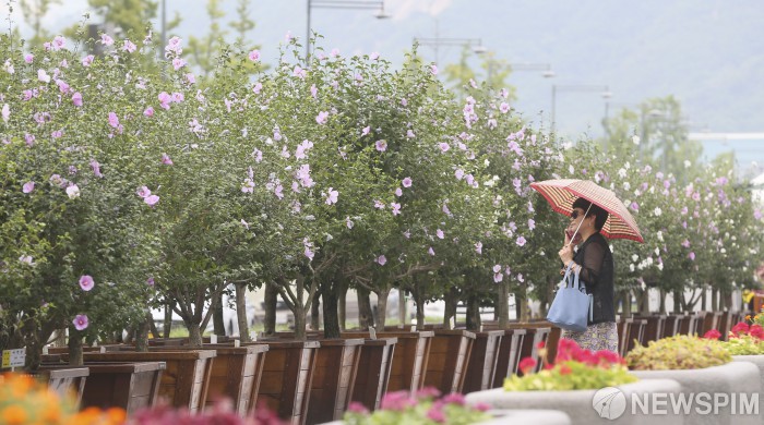 [서울=뉴스핌] 이형석 기자 = 제28회 나라꽃 무궁화 전국축제를 하루 앞둔 9일 오후 서울 종로구 광화문광장에 무궁화 꽃이 가득 피어 있다. 2018.08.09 leehs@newspim.com