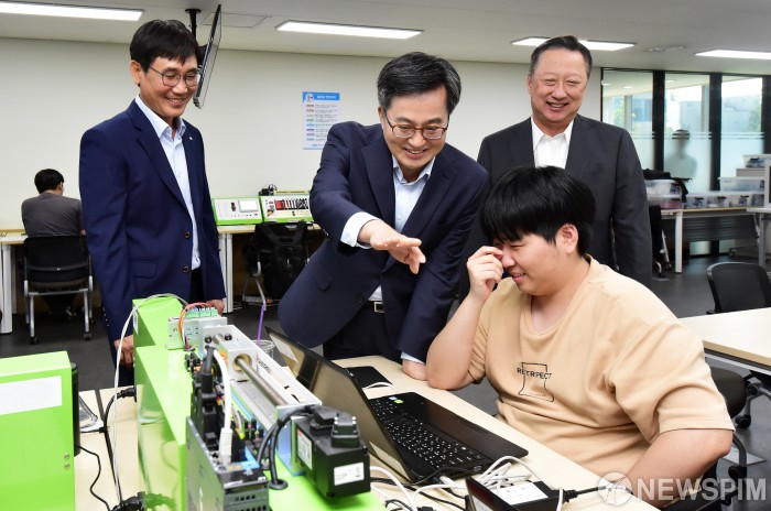[서울=뉴스핌] 최상수 기자 = 김동연 경제부총리 겸 기획재정부 장관, 박용만 대한상공회의소 회장이 16일 서울 화곡동에 위치한 대한상공회의소 서울기술교육센터를 방문하여 학생들과 대화를 나누고 있다. 2018.08.16 kilroy023@newspim.com