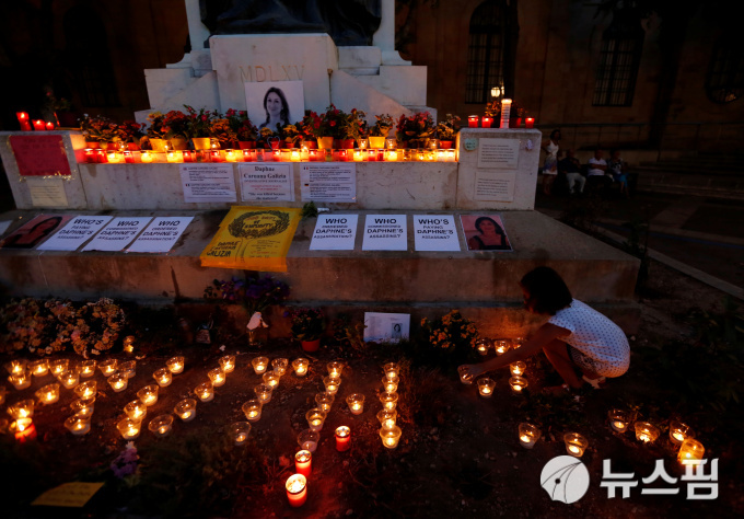 [발레타 로이터=뉴스핌] 이홍규 기자 = 몰타 수도 발레타에서 한 아이가 탐사보도 전문기자 다프네 카루아나 갈리지아 암살 10개월 추모하는 철야 시위가 열린 가운데 한 아이가 그의 임시 기념비 앞에 촛불을 놓고 있다. 2018.08.16