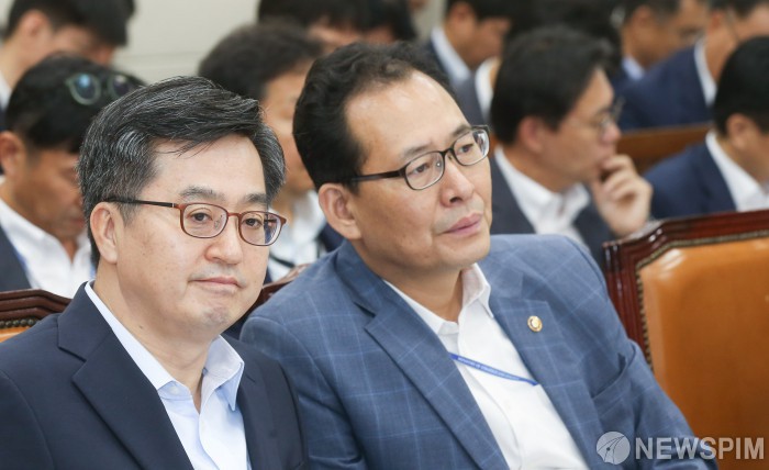 [서울=뉴스핌] 최상수 기자 = 김동연 부총리 겸 기획재정부 장관, 고형권 1차관이 21일 오전 서울 여의도 국회에서 열린 기획재정위원회 전체회의에 참석하고 있다. 2018.08.21 kilroy023@newspim.com