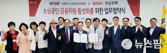 [창원=뉴스핌] 남경문 기자 = BNK경남은행은 28일 오후 진해구소상공인연합회와 ‘소상공인 금융지원 활성화를 위한 업무협약’을 체결했다고 29일 밝혔다.