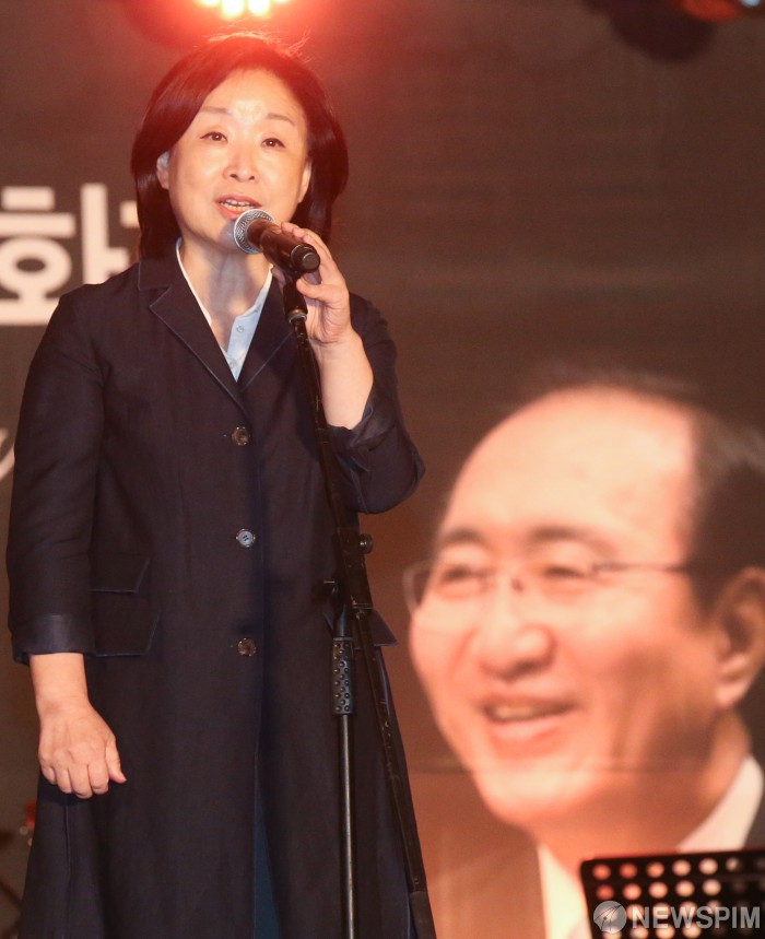 [서울=뉴스핌] 최상수 기자 = 심상정 정의당 의원이 7일 저녁 서울 여의도 국회 잔디광장에서 열린 고(故) 노회찬 국회의원 추모문화제에서 발언하고 있다. 2018.09.07 kilroy023@newspim.com