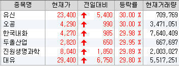 비료생산업체 대유는 29.80% 상승한 6750원을 기록했다. 경협뿐 아니라 중국 비료시장에 진출할 것이란 기대감도 반영됐다.