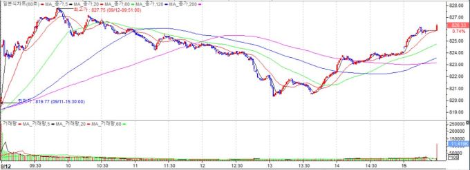 이날 코스닥은 전 거래일 대비 6.10포인트(+0.74%) 상승한 826.33에 거래를 마쳤다. 개인이 1166억원 순매도한 가운데 외국인과 기관이 각각 646억, 567억원 순매수했다.