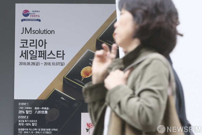 [서울=뉴스핌] 이형석 기자 = 국내 최대 쇼핑관광축제인 코리아세일페스타가 오늘(28일)부터 내달 7일까지 10일간 개최된다. 서울 중구 명동거리에 코리아세일페스타를 알리는 포스터가 붙어 있다. 2018.09.28 leehs@newspim.com