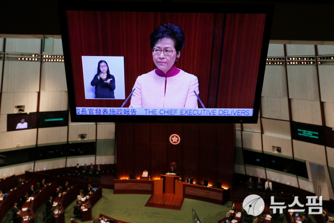 | [홍콩 로이터=뉴스핌] 최원진 기자= 홍콩 행정장관 캐리 람이 홍콩의 입법회에서 연례 시정보고 연설을 하고 있다. 2018.10.10. |