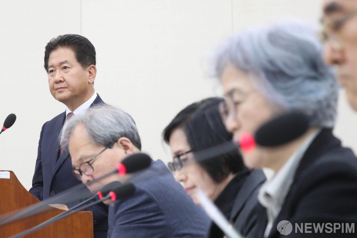 [서울=뉴스핌] 김학선 기자 = 16일 국회에서 열린 정무위원회의 국민권익위원회, 국가보훈처 등에 대한 국정감사에서 증인으로 출석한 서주석 국방부 차관이 장병완 민주평화당 원내대표의 질의를 듣고 있다. 2018.10.16 yooksa@newspim.com