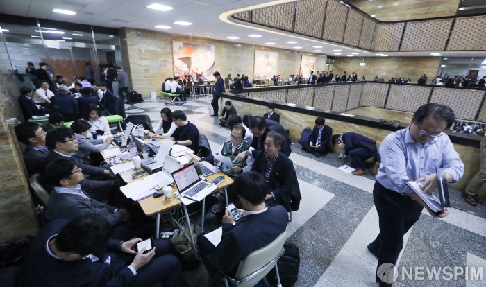 [서울=뉴스핌] 최상수 기자 = 종합 국정감사가 진행되는 26일 국회에서 피감사기관 공무원들이 의원들 질의에 대한 자료 등을 대비하고 있다. 2018.10.29 kilroy023@newspim.com