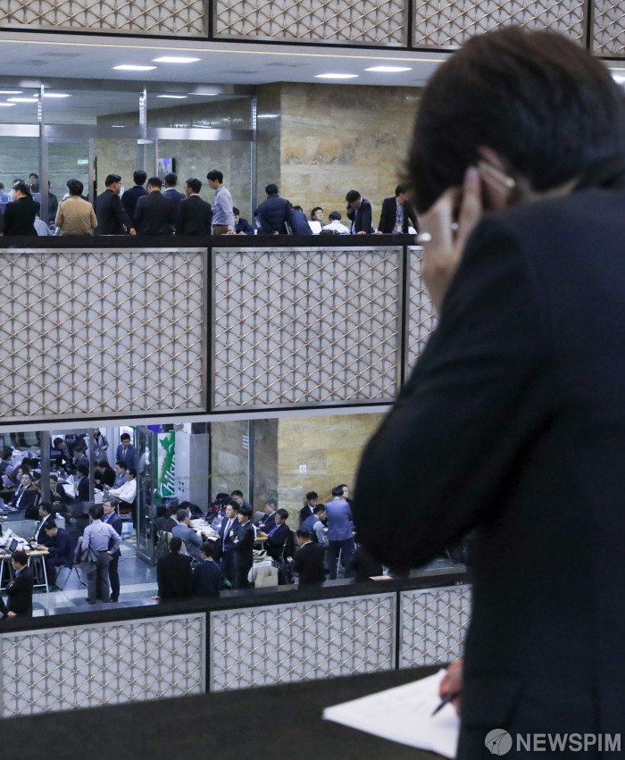 [서울=뉴스핌] 최상수 기자 = 종합 국정감사가 진행되는 26일 국회에서 피감사기관 공무원들이 의원들 질의에 대한 자료 등을 대비하고 있다. 2018.10.29 kilroy023@newspim.com