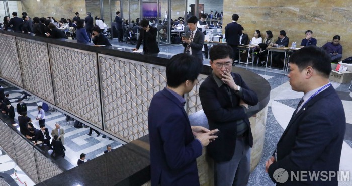 [서울=뉴스핌] 최상수 기자 = 종합 국정감사가 진행되는 26일 국회에서 피감사기관 공무원들이 의원들 질의에 대한 자료 등을 대비하고 있다. 2018.10.29 kilroy023@newspim.com