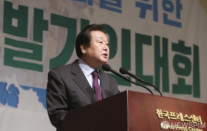 [서울=뉴스핌] 이형석 기자 = 김무성 자유한국당 의원이 1일 오전 서울 중구 프레스센터에서 열린 평화, 통일 비전 사회적대화를 위한 전국시민회의 발기인대회에서 축사를 하고 있다. 2018.11.01 leehs@newspim.com