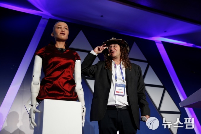 | [세인트 줄리안스 몰타 로이터=뉴스핌] 황숙혜 기자 = 핸슨 로보틱스의 과학자들이 만들어낸 로봇 소피아가 몰타 블록체인 행사에서 선보였다. 2018. 11. 01. |