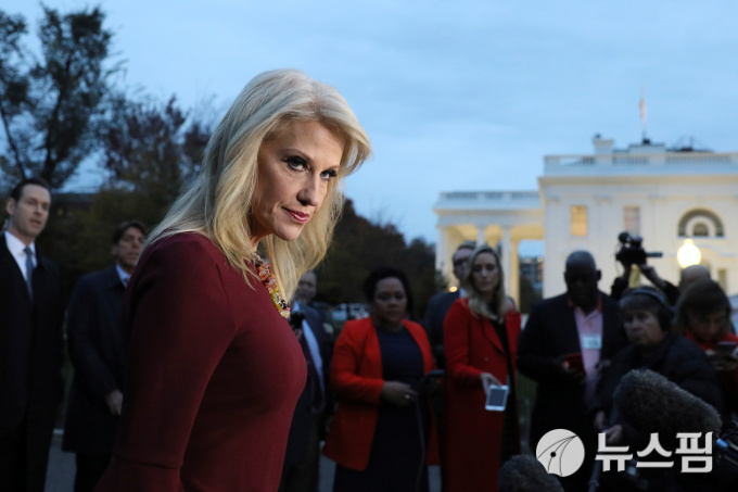 | [워싱턴 로이터=뉴스핌] 이홍규 기자 = 켈리엔 콘웨이 백악관 고문이 미국 워싱턴에 있는 백악관의 근처에서 기자들과 이야기를 나누고 있다. 2018.11.07 |