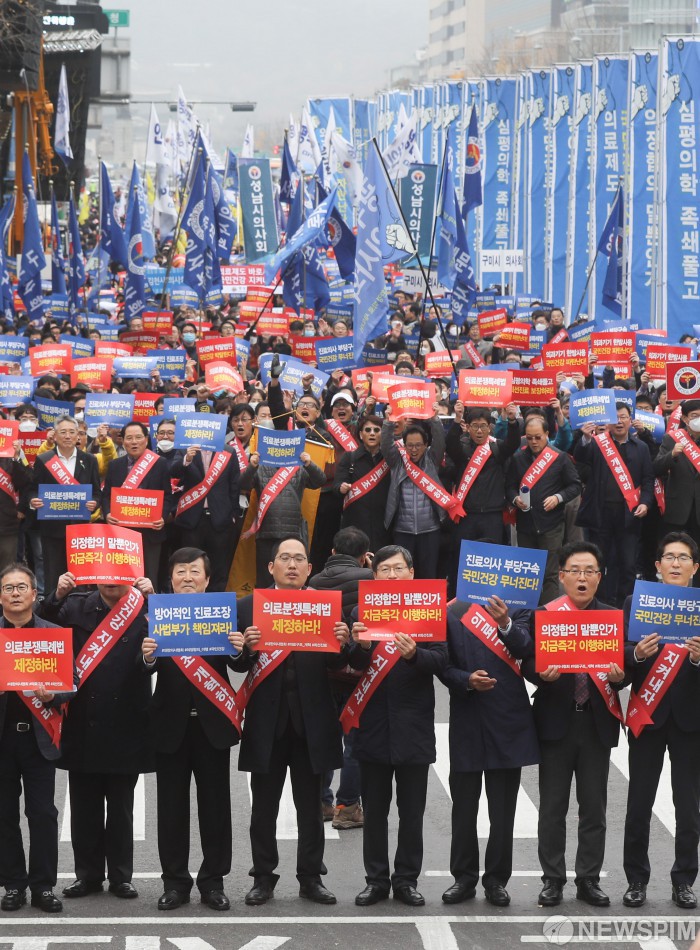 [사진] 구호 외치는 전국의사 총궐기대회 참가자들