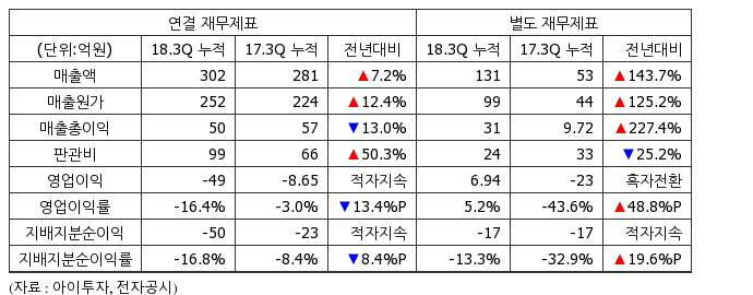 올해 3분기 누적 기준 연결 매출액은 302억1792만원으로 전년 동기 281억8762만원 대비 7.2% 늘었다.