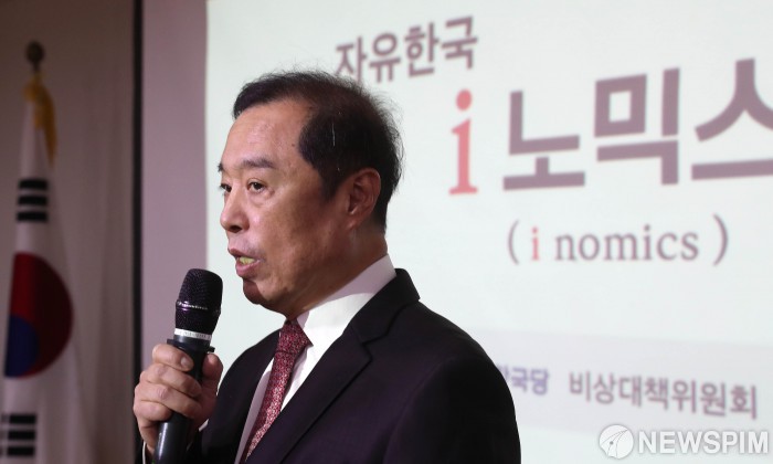 [서울=뉴스핌] 김학선 기자 = 김병준 자유한국당 비상대책위원장이 19일 국회 의원회관에서 기자간담회를 열고 한국당의 경제담론인 국민성장론을 구체화한 'i노믹스'를 발표하고 있다. 2018.11.19 yooksa@newspim.com