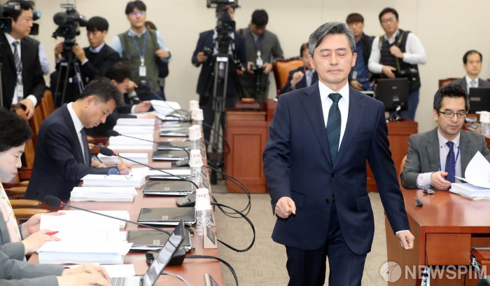 [서울=뉴스핌] 김학선 기자 = 양승동 한국방송공사(KBS) 사장 후보자가 19일 국회에서 열린 인사청문회에서 선서문을 제출한 뒤 자리로 향하고 있다. 2018.11.19 yooksa@newspim.com