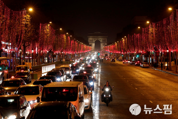 | [파리 로이터=뉴스핌] 정윤영 인턴기자 = 22일(현지시각) 크리스마스 조명으로 밝게 빛나는 프랑스 파리의 샹젤리제 거리. 거리 끝에 개선문이 보인다. 2018.11.23. |