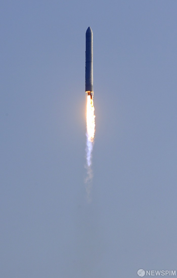 [고흥=뉴스핌] 사진공동취재단 = 순수 국내기술로 개발된 한국형발사체(KSLV-2) ‘누리호’의 시험발사체가 27일 오후 전라남도 고흥 나로우주센터 발사대에서 우주를 향해 발사되고 있다. 2018.11.28