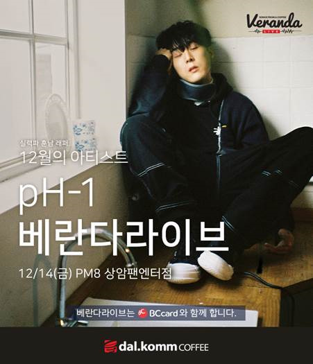 pH-1은 쇼미더머니 777에 출연해 수준 높은 공연으로 인기를 끈 훈남래퍼로 최근 싱글앨범 ‘스테잉(staying)’을 발표하고, 달콤커피 베란다라이브를 통해 팬들과 만날 예정이다.