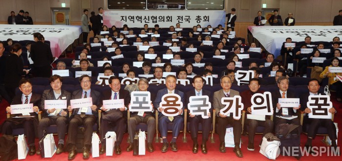 [서울=뉴스핌] 이형석 기자 = 17일 오후 서울 종로구 외교부청사 대강당에서 열린 지역혁신협의회 전국 총회에서 참석자들이 기념촬영을 하고 있다. 2018.12.17 leehs@newspim.com