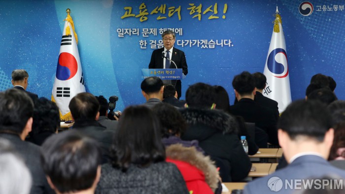 [부천=뉴스핌] 정일구 기자 = 이재갑 고용노동부 장관이 27일 경기 부천시 부천고용복지플러스센터에서 열린 고용센터 혁신 방안 발표에 참석해 발언을 하고 있다. 2018.12.27 mironj19@newspim.com