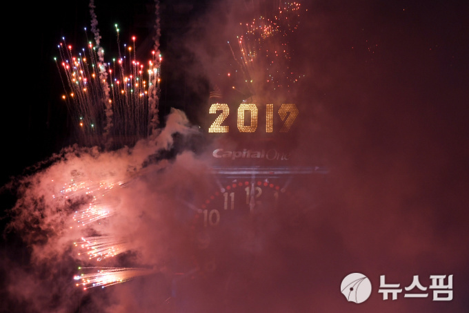 [뉴욕 로이터=뉴스핌] 정윤영 인턴기자 = 1일(현지시각) 2019년 새해를 맞이해 미국 뉴욕 타임스퀘어에서 불꽃놀이가 펼쳐지고 있다. 2019.01.01.