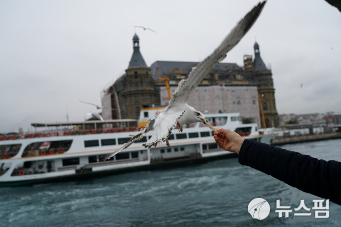 | [이스탄불 로이터=뉴스핌] 정윤영 인턴기자 = 2일(현지시각) 터키 이스탄불에서 한 남성이 페리를 타며 갈매기에게 모이를 주고 있다. 2019.01.02. |