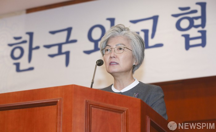 [서울=뉴스핌] 이형석 기자 = 강경화 외교부장관이 4일 오전 서울 서초동 한국외교협회에서 열린 한국외교협회 신년인사회에서 인사말을 하고 있다. 2019.01.04 leehs@newspim.com