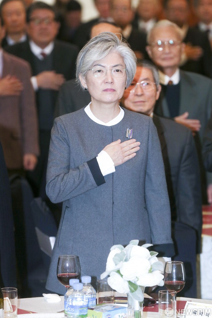 [서울=뉴스핌] 이형석 기자 = 강경화 외교부 장관이 4일 오전 서울 서초동 한국외교협회에서 열린 한국외교협회 신년인사회에서 국민의례를 하고 있다. 2019.01.04 leehs@newspim.com